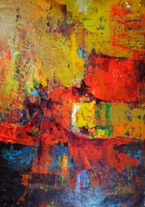 Her vibrant palette and expressive gestures capture fleeting moments—rain-soaked memories, silent pauses, and luminous bursts of energy. The paintings move effortlessly between spontaneity and introspection, evoking feelings of joy, innocence, serenity, and profound contemplation. Rather than offering fixed narratives, the works invite viewers to engage personally, discovering their own meanings within layers of color and texture. Chromatic Resonance is an immersive journey into abstraction, emotion, and the enduring beauty of nature as perceived through Jhunu Sarkar’s distinctive artistic vision.