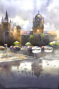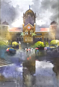 This exhibition comes at a time when Irap’s artistry has been earning international acclaim. His painting “A Wet Day”, portraying Mumbai’s CST. Station during the monsoon, was recently selected for the 45th International Exhibition of the San Diego Watercolor Society (SDWS), USA, qualifying him for the society’s coveted Signature Membership. This was his third consecutive selection by SDWS, a rare achievement that cements his place among the finest watercolorists globally.