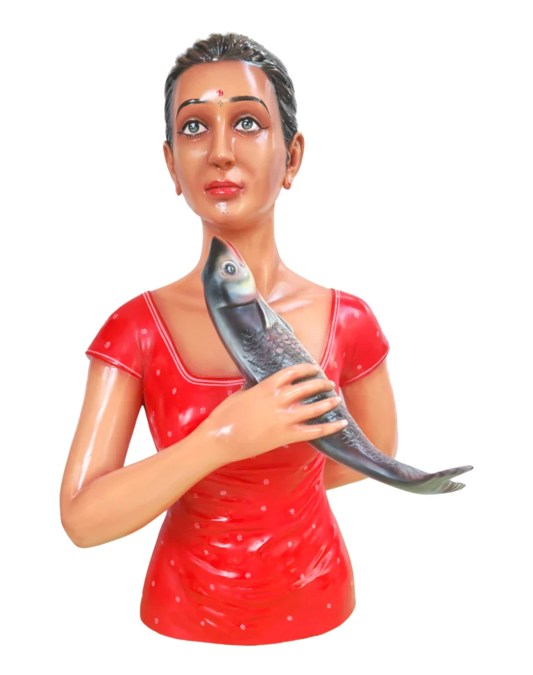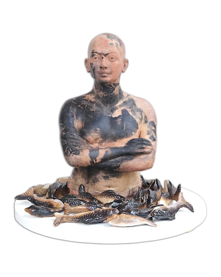 These sculptures resonate with the lived realities of seaside communities for whom the sea remains a lifeline. Here, nature is not a backdrop but the governing force that shapes labour, survival, and everyday life. The works also bear witness to polluted waters, altered coastlines, and bodies marked by ecological imbalance.