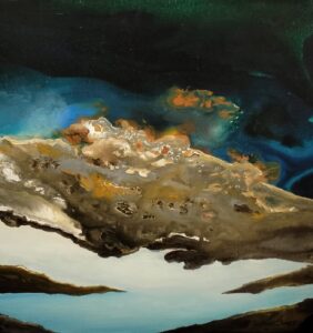 In his visual world, blurred horizons, veiled mountain ranges, and mirrored reflections in water craft a dreamlike ambiance—one that compels viewers to look beyond the surface. His painterly language reflects a sophisticated understanding of space, light, and form. He does not merely depict nature; he interprets it, revealing layers of meaning that transcend visual representation and challenge the very boundaries of artistic expression. His abstract works transform natural elements into symbolic reflections of life. Mountains represent stability and strength; rivers suggest movement and continuity; clouds speak of life’s uncertainty; and the sky becomes a metaphor for freedom and spiritual longing. Through these expressive compositions, Saxena’s art functions as a metaphorical mirror of human existence. Nature, with its rhythmic cycles and inner divinity, profoundly influences human life. Prof. Saxena’s paintings invite the viewer to experience nature not as a static entity, but as a continuously unfolding mystery—one that captures fleeting moments while awakening wonder and introspection. His works are not mere depictions, but meditative explorations that resonate with emotional depth and philosophical inquiry.