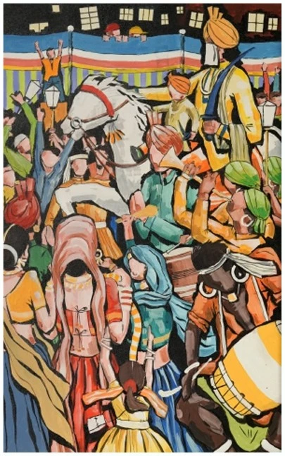 Naveen’s artworks span abstract compositions, nostalgic old-world streetscapes, and satirical realist narratives infused with wit and quiet humour. His notable works include Golgappewala, Sharaabwala, Jugaadwala, Baraatwala, and Ateet Ki Galliyan. Each piece captures slices of everyday life—from the bustling chaos of street food rituals and the blurred camaraderie of evening gatherings, to the ingenuity of “jugaad,” the vibrant spontaneity of baraats, and the quiet nostalgia of memory-laden streets. His practice reflects a constant state of reinvention at times playful and spontaneous, at others precise and disciplined revealing both the freedom of a curious mind and the rigour of architectural training. Through these works, Naveen transforms familiar urban experiences into layered visual narratives that resonate deeply with viewers. Through his art, Naveen continues to blur boundaries between art and architecture, memory and imagination inviting audiences into spaces that are both deeply personal and universally relatable.